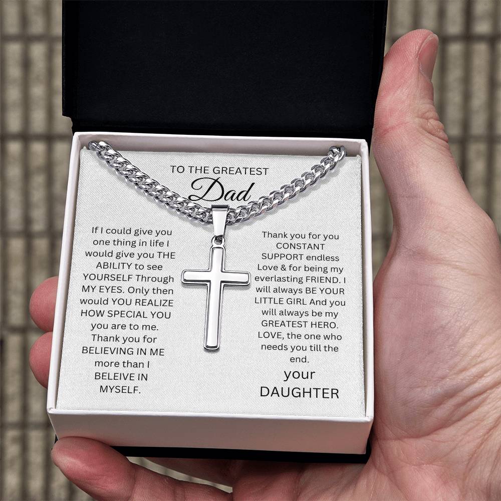 For the man who has been your hero, your protector, and your greatest blessing—this Cuban link chain with an artisan cross is more than a gift. It’s a symbol of your gratitude, love, and admiration. Designed for the dad who deserves the world, the bold Cuban link and intricate cross reflect his strength, faith, and unwavering love. Remind him every day how much he means to you with this timeless keepsake